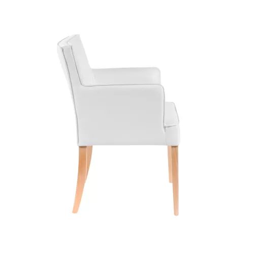 Klassischer Stuhl aus massivem Buchenholz – ideal für Restaurants, Cafés und gastronomische Einrichtungen. Das zeitlose Design passt sich sowohl traditionellen als auch modernen Innenräumen an. Auf Wunsch in verschiedenen Holzbeizungen und Polsteroptionen individuell anpassbar.