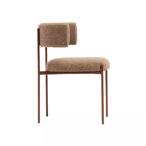 Der Amelie Chair mit Armlehnen vereint gekonnt Retro-Charme mit modernem Design. Sein vierbeiniges Metallgestell, erhältlich in verschiedenen Farben, trägt eine vollständig gepolsterte Sitzfläche und Rückenlehne. Die Sitzschale lässt sich individuell gestalten und bietet verschiedene Stoffe und Farben sowie einen kontrastierenden Einsatz für die Rückenlehne.