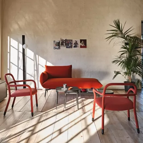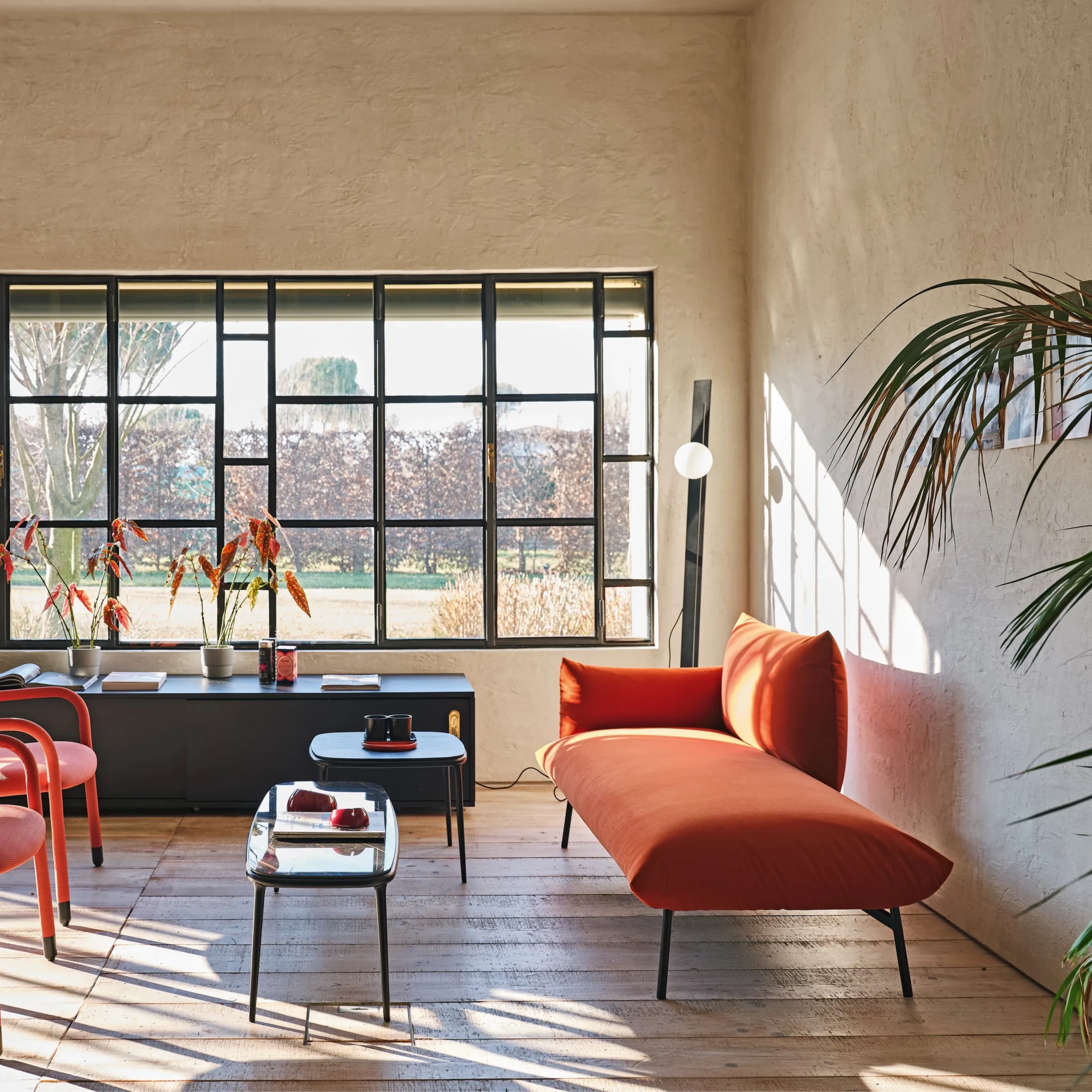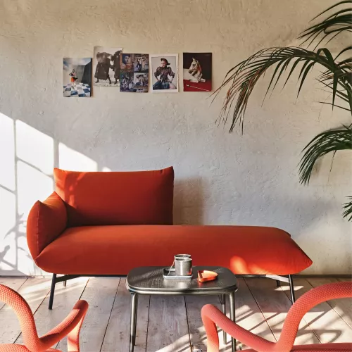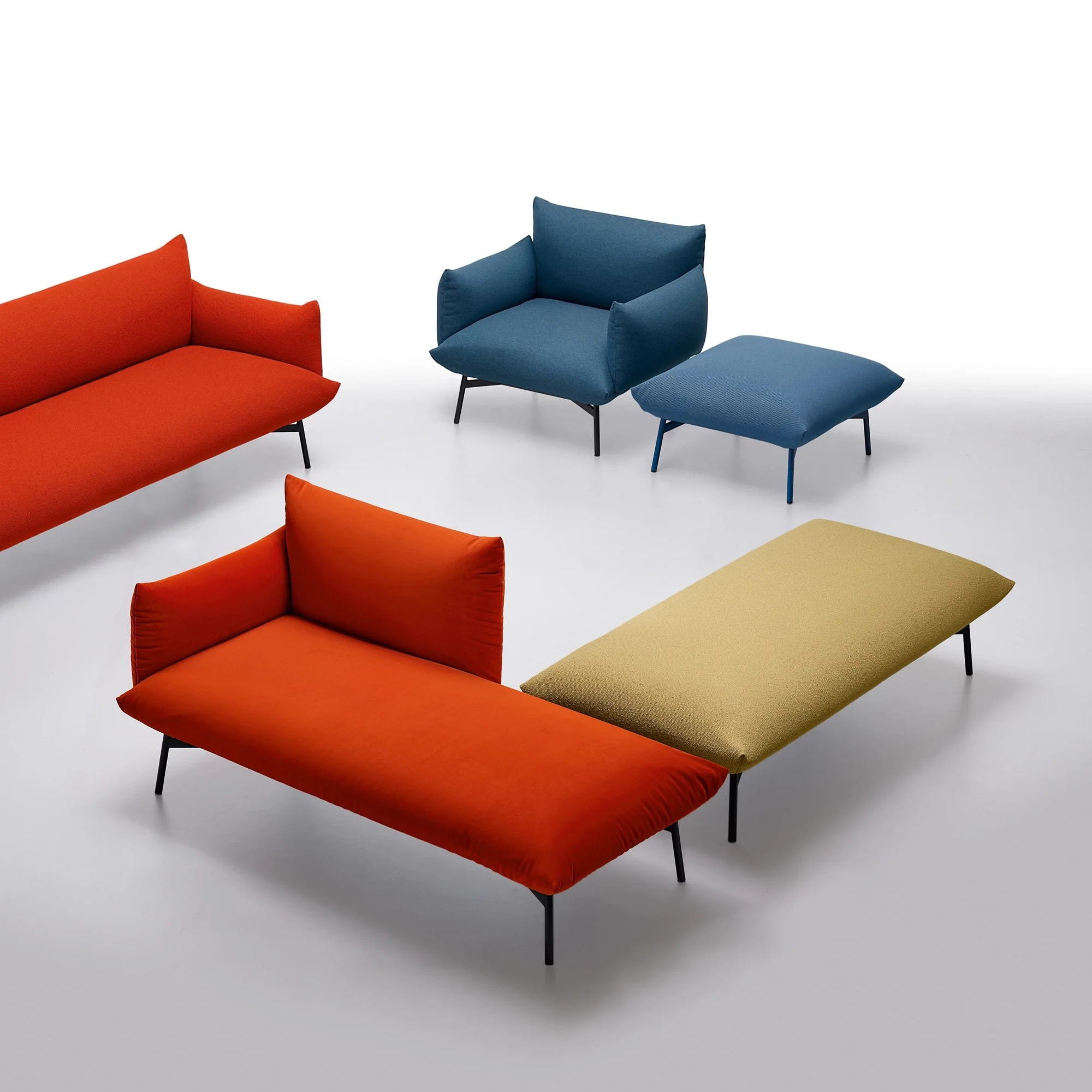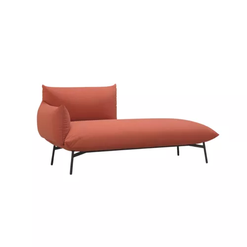 Area Dormeause DV2_DRM M TS ist eine elegante Chaiselongue für den HORECA-Bereich. Sie verfügt über eine weiche, gepolsterte Sitzfläche und Rückenlehne sowie ein lackiertes Stahlgestell in verschiedenen Farben. Ideal für Lobbys, Lounges und moderne Wartebereiche.