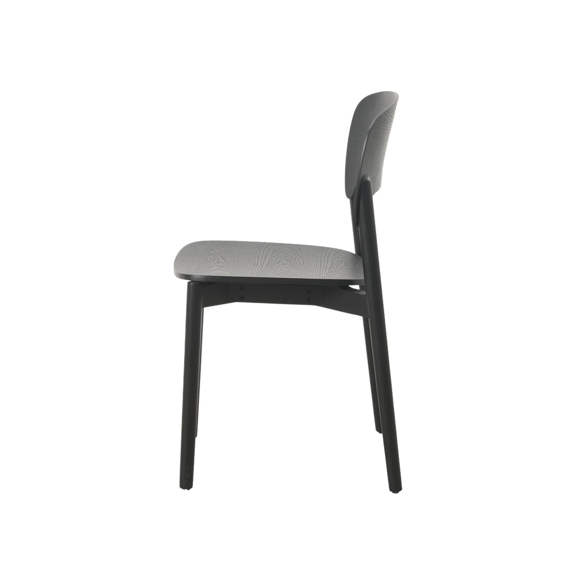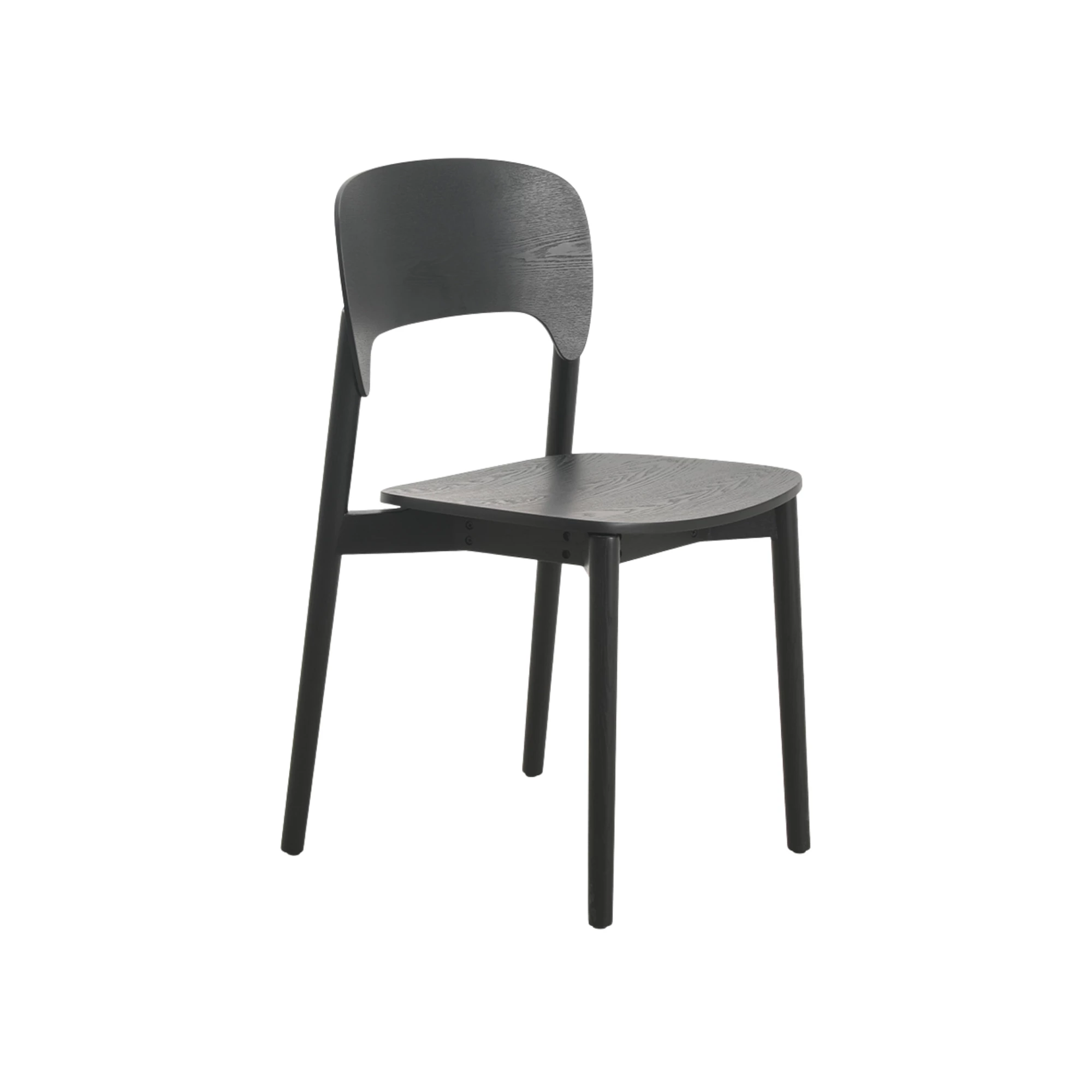 Moderner Stuhl aus massivem Eichenholz mit klarer Form. Perfekt für zeitgemäße HoReCa-Bereiche. In verschiedenen Holzfarben erhältlich.