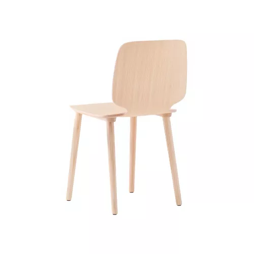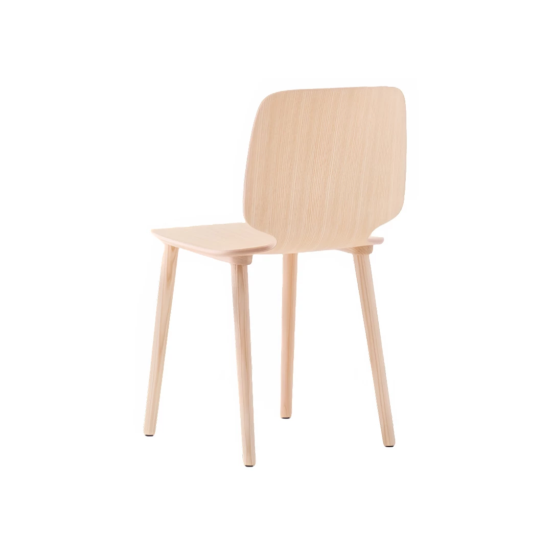 Die Sitzfläche aus Eschenfurnier mit variabler Stärke sorgt für eine ergonomische Form, die sowohl optische Leichtigkeit als auch Komfort bietet. Die Beine aus massivem Eschenholz verleihen dem Stuhl Stabilität und natürliche Eleganz, ideal für verschiedene Umgebungen – von modernen Esszimmern bis zu stilvollen Büroräumen.