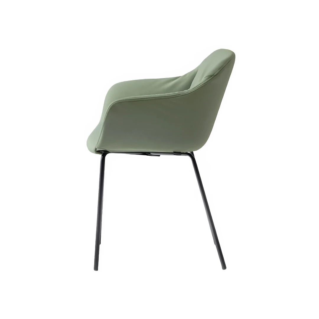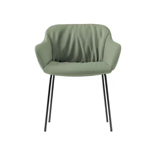 Babila XL 2733R vereint Tradition und Innovation in einem ausgewogenen Design. Der Sessel verfügt über eine großzügige Sitzfläche und breite Armlehnen mit einer formgepressten Schale aus vollständig recyceltem Polypropylen – 50 % aus post-consumer Kunststoffabfällen und 50 % aus industriellen Kunststoffresten. Die Schale ist mit Glasfaser verstärkt, antistatisch und UV-beständig. Das Stahlrohrgestell (Ø16 mm) sorgt für Stabilität. Der abnehmbare, gepolsterte Bezug ist mit flexiblem Polyurethanschaum (65 kg/m³) gefüllt, schwer entflammbar (Klasse 1 IM) und lässt sich leicht reinigen oder entfernen. Die Innenseite ist rutschfest und dunkelgrau.