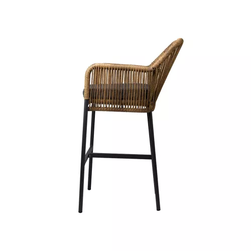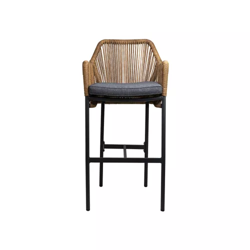 Der Terrassen-Barstuhl Baleric wurde speziell für anspruchsvolle Horeca-Umgebungen entwickelt und besticht durch Stil und Langlebigkeit. Mit seinem robusten anthrazitfarbenen Aluminiumrahmen und UV-beständigem Seilgeflecht an Rücken- und Armlehnen verbindet er Langlebigkeit mit moderner Ästhetik. Ideal für den Außenbereich, passt sein edles Design gleichermaßen zu Hotels, Restaurants und Cafés. Erhältlich in Braun, Grün, Blau und Grau, bietet der Baleric vielfältige Anpassungsmöglichkeiten. Er verfügt über ein bequemes Kissen und ist ergonomisch geformt für optimalen Sitzkomfort. Ein passender Terrassenstuhl ist ebenfalls erhältlich und somit die perfekte Lösung für harmonische Horeca-Terrassen.