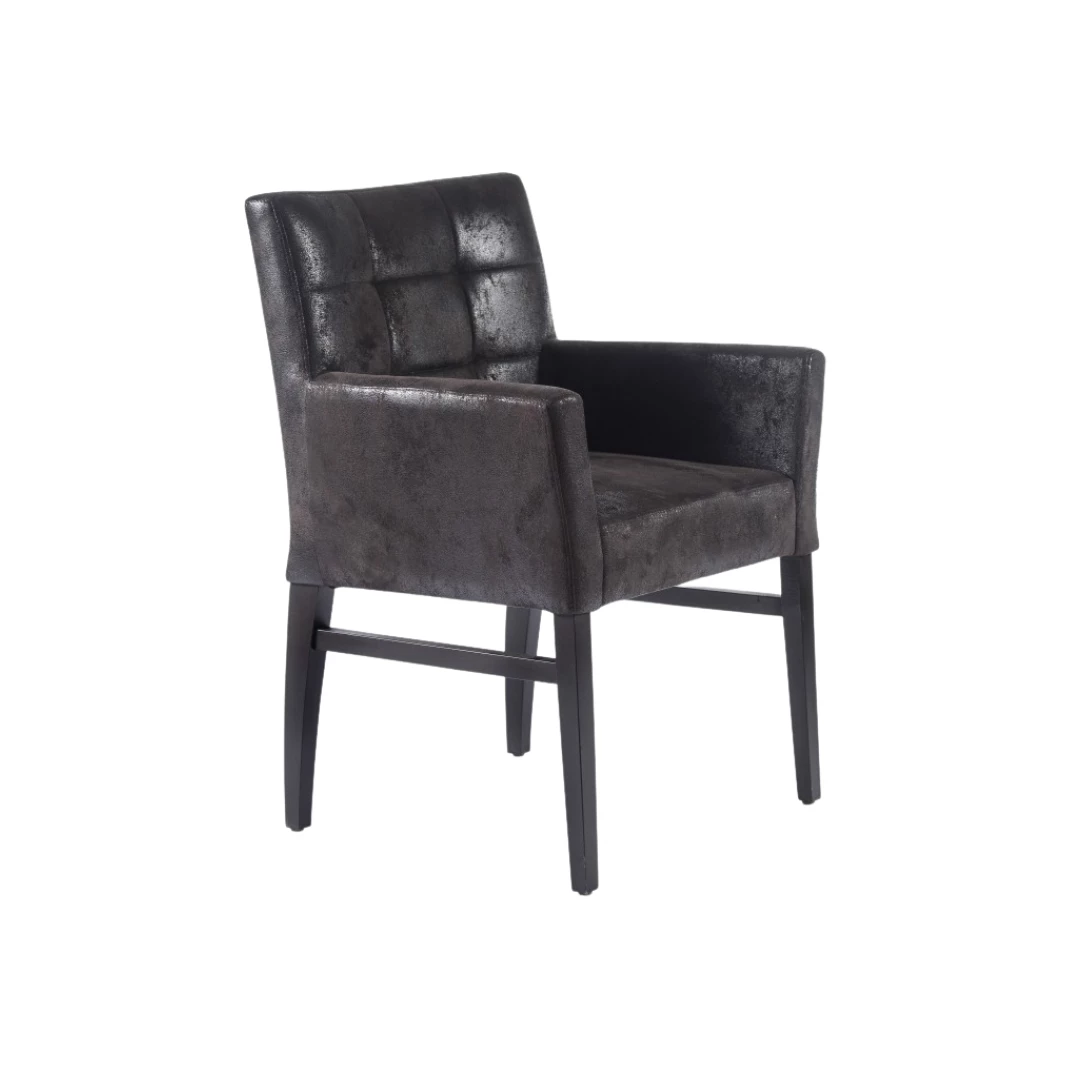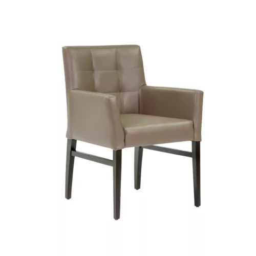 Bernard A Square Capitons ist ein komfortabler Holzstuhl mit Armlehnen, ideal für die Gastronomie. Der Buchenholzrahmen ist in verschiedenen Beiztönen erhältlich. Die Rückenlehne ist mit dekorativen Kapitonierstichen versehen. Die Polsterung ist strapazierfähig und für den intensiven Gebrauch geeignet.