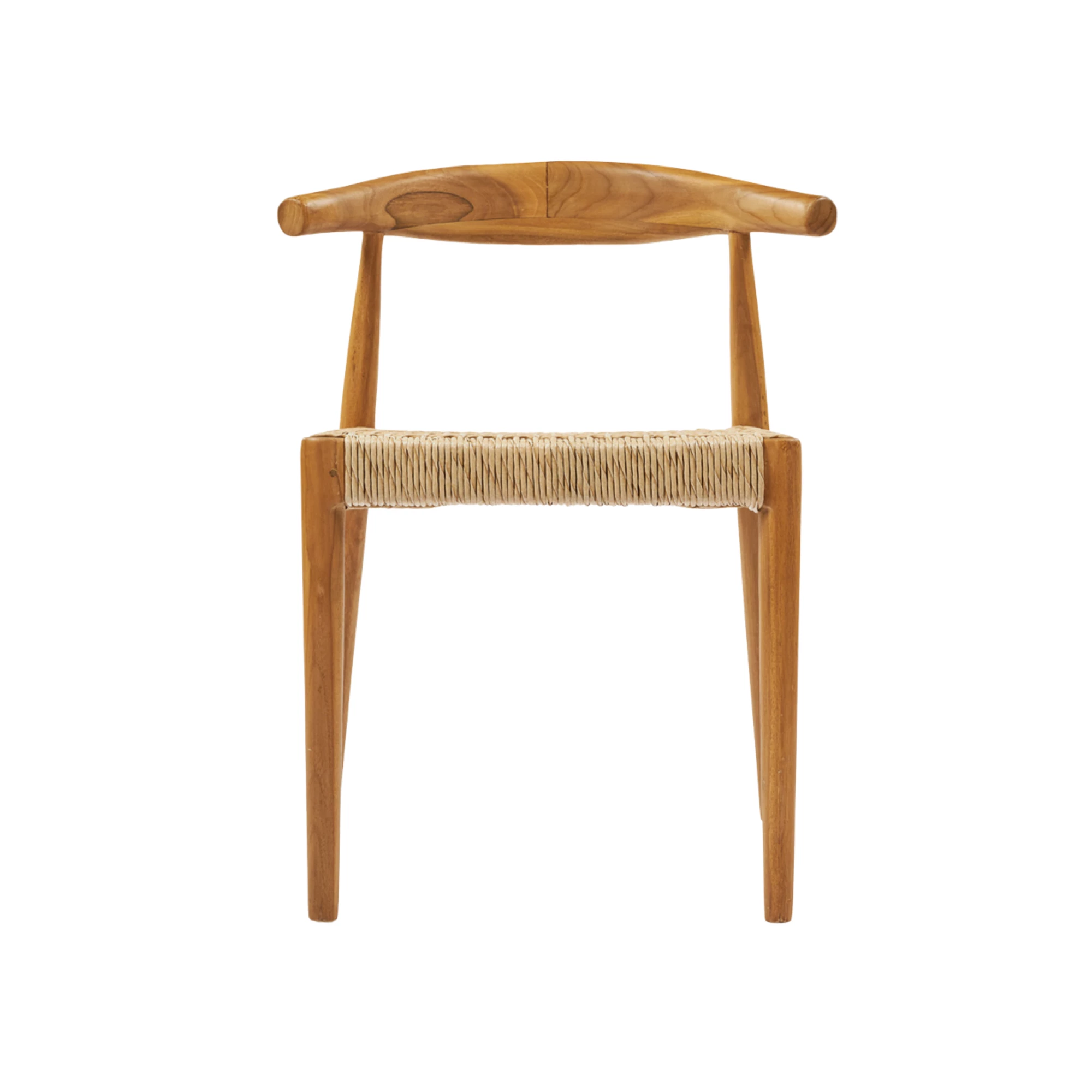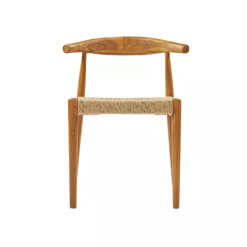 Outdoor-Stuhl aus robustem Teakholz, mit Sitz und Rückenlehne aus hochwertigem synthetischem Rattan. Wetterbeständig, ideal für Terrasse, Garten oder Balkon. Maße: 55x49x76 cm.
