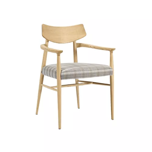 Der Stuhl Bismark A FS vereint Eleganz und Komfort mit seinem Gestell aus gebeiztem Buchenholz , dem gepolsterten Sitz mit Nosag-Federn und den komfortablen Armlehnen . Er ist auf Langlebigkeit und Stil ausgelegt und eignet sich perfekt für Restaurants, Schnellimbisse und Bistros . Er bietet dauerhaften Komfort, eine ansprechende Ästhetik und ein einladendes Ambiente.