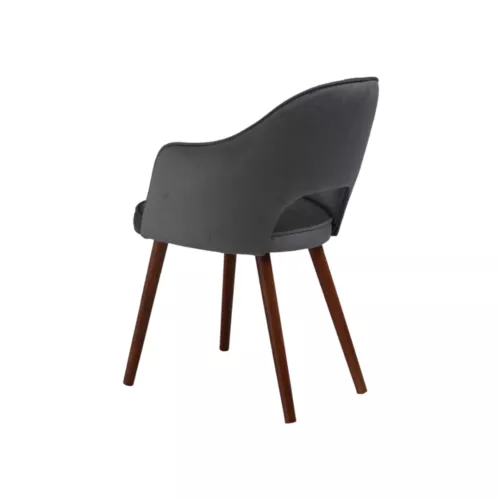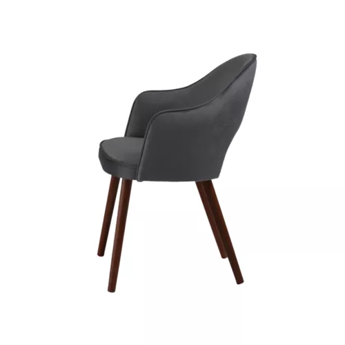 Bistra A Gap ist ein moderner Polsterstuhl mit Armlehnen und markantem Rückenausschnitt. Die Beine aus Buchenholz sind in verschiedenen Beizfarben erhältlich. Die strapazierfähige Polsterung aus Stoff oder Kunstleder macht ihn zur idealen Wahl für stilvolle Gastronomie- oder Hoteleinrichtungen.