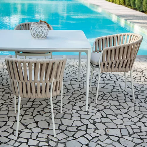 Regular care preserves the appearance and durability of rope elements. Dust and dirt should be removed periodically with a vacuum cleaner or soft brush. Avoid abrasive tools such as scouring pads, sandpaper, or aggressive sponges. Rinse with clean water if needed to remove surface dust. For stains, gently dab with a microfiber cloth soaked in lukewarm water and mild soap. After cleaning, rinse thoroughly with clean water and allow to air dry. Do not use bleach, chlorine-based products, or harsh solvents.