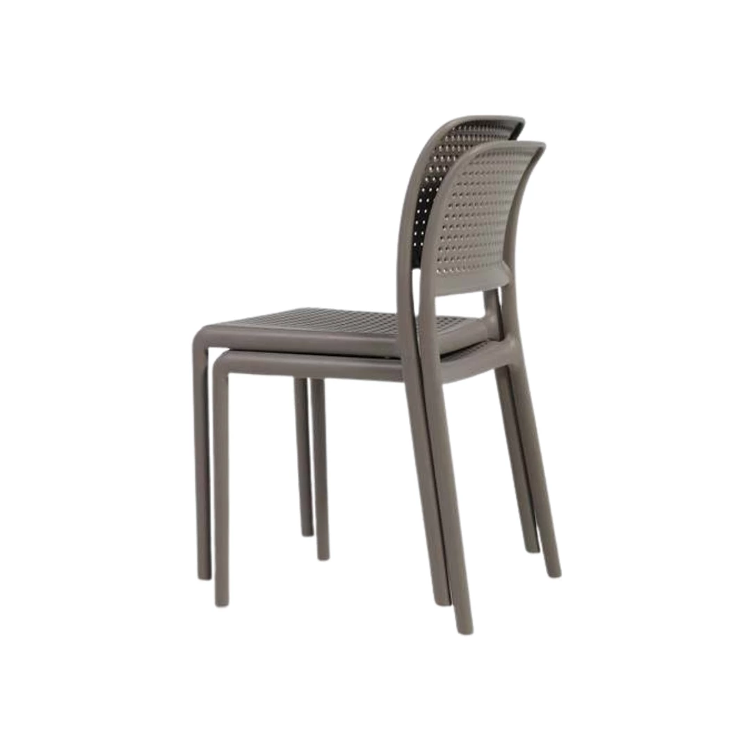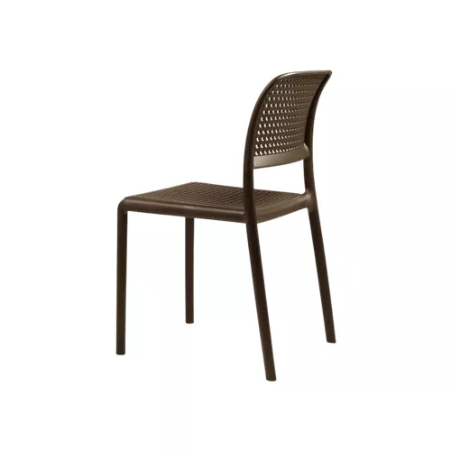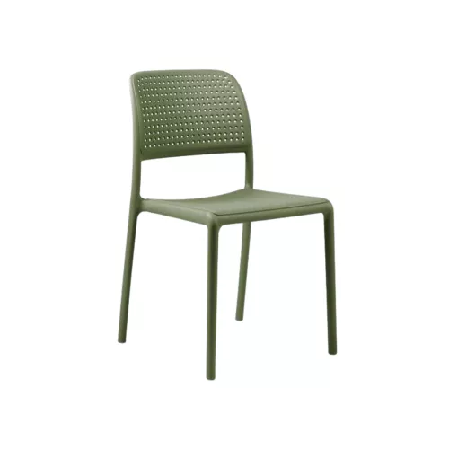 Bora Bistrot ist ein Monoblock-Stuhl für den Außenbereich, gefertigt aus glasfaserverstärktem Polypropylen mit UV-Zusätzen. Er hat eine matte Oberfläche, ist stapelbar, recycelbar und ideal für Gastronomie-Terrassen geeignet.