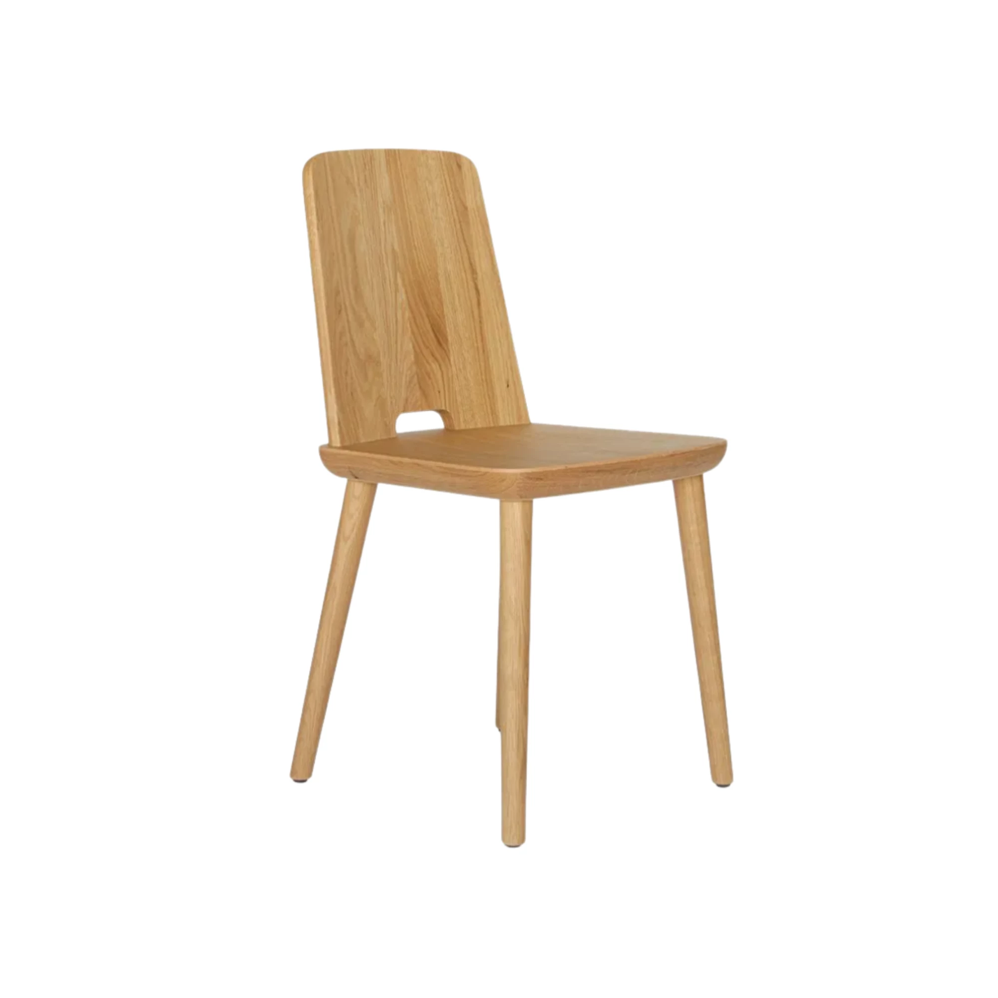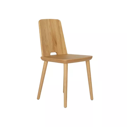 Der Bregenz-Stuhl besteht aus natürlichem Eschenholz und weist ein lineares und vielseitiges Design auf, das ihn ideal für den gewerblichen Einsatz macht. Er lässt sich dank des Lochs in der Rückenlehne, das auf Sitzhöhe positioniert ist, leicht bewegen und transportieren. Der Sitz besteht aus massivem und furniertem Eschenholz. Er ist mit einem Polyurethan-Lack versehen, der ihn für den intensiven gewerblichen Einsatz haltbar macht. Er ist in verschiedenen Farben erhältlich und hat eine offene Oberflächenbehandlung. Optional können Schutzfüße aus Kunststoff oder Filz für den Boden hinzugefügt werden. Die anspruchsollen Proportionen und das präzise Design machen diesen Stuhl zu einem weit verbreiteten Möbelstück.