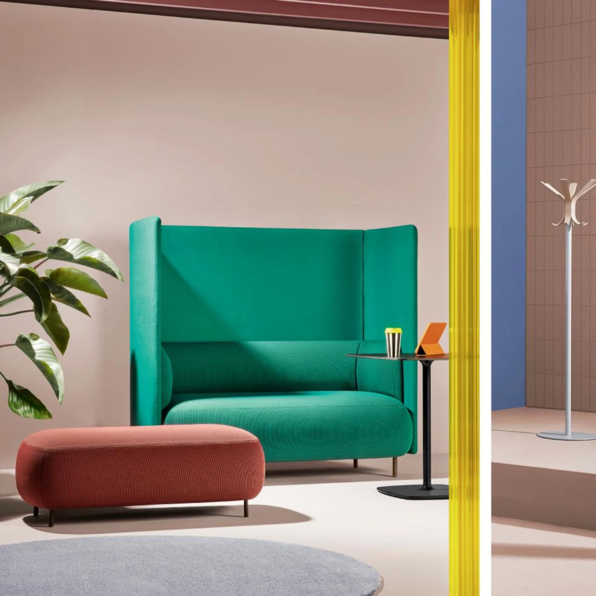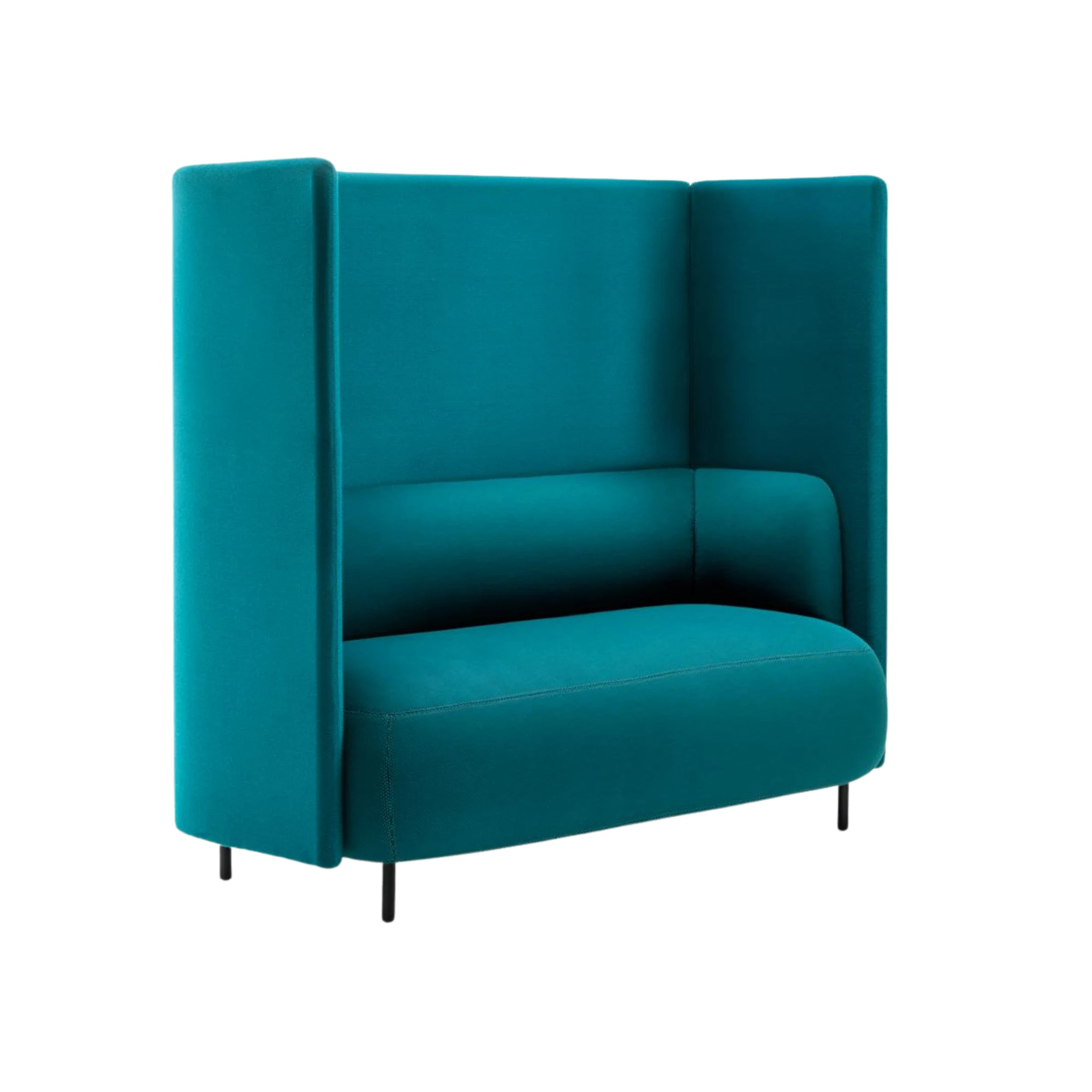 Diese funktionale und effiziente Sitzlösung schafft eine sanft umschlossene Nische, die sowohl akustische als auch visuelle Privatsphäre bietet und perfekt auf die sich wandelnden Bedürfnisse moderner Büros und Gemeinschaftsräume abgestimmt ist. Eine umlaufende, schallabsorbierende Paneele mit einer Höhe von 1400 mm umschließt den Sitz und bildet eine private Nische, ideal für konzentriertes Arbeiten oder entspannte Gespräche. Sitzfläche, Rückenlehne und Armlehnen sind mit Polyurethanschaum gepolstert und werden von elastischen Gurten gehalten, während der robuste Stahlrahmen und die Aluminiumbeine für dauerhafte Stabilität sorgen. Für zusätzlichen Komfort können integrierte Steckdosen zum einfachen Anschließen von Ladegeräten eingebaut werden.