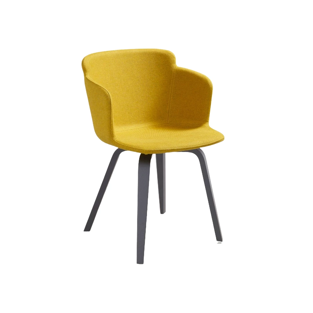Der Polsterstuhl Calla P L_N TS mit Armlehnen vereint natürliche Eleganz und Komfort. Seine furnierten Holzbeine, erhältlich in verschiedenen Ausführungen, unterstreichen seine edle Ästhetik. Der gepolsterte Sitz, wahlweise mit hochwertigen Stoffen oder Kunstleder bezogen, garantiert Stil und Langlebigkeit – ideal für diverse Gastronomiebereiche.