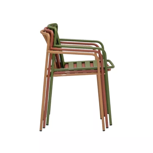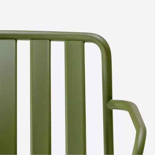 Coney ist eine Outdoor-Sitzkollektion, die Funktionalität, Komfort und markantes Design vereint. Dieser Armlehnstuhl besteht vollständig aus einem einzigen Material und verfügt über ein gebogenes, robustes Rohrgestell, das Stabilität und Leichtigkeit kombiniert. Sitz und Rückenlehne bilden eine dreidimensionale Struktur, die ergonomischen Halt und Festigkeit gewährleistet. Gleichmäßig angeordnete vertikale Lamellen der Rückenlehne, geformt aus Metallblech, bilden zusammen mit den horizontalen Lamellen der Sitzfläche ein unverwechselbares Muster. Coney eignet sich perfekt für urbane Außenbereiche, Restaurantterrassen oder private Balkone und Gärten.