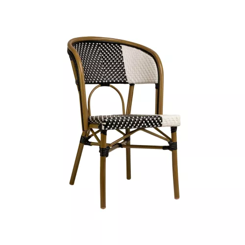 Dieser Terrassenstuhl bringt eine entspannte und stilvolle Atmosphäre in jeden Außenbereich der Gastronomie. Der leichte Aluminiumrahmen in Kombination mit einer pulverbeschichteten Oberfläche sorgt für Stabilität und Langlebigkeit – ideal für stark frequentierte Terrassen, Cafés und Restaurantbereiche im Freien. Die komfortable Sitzfläche lädt Gäste dazu ein, ihre Zeit im Freien in angenehmer Umgebung zu genießen. Der Stuhl ist in drei Farbkombinationen erhältlich: Schwarz/Weiß, Blau/Beige und Rot/Weiß.