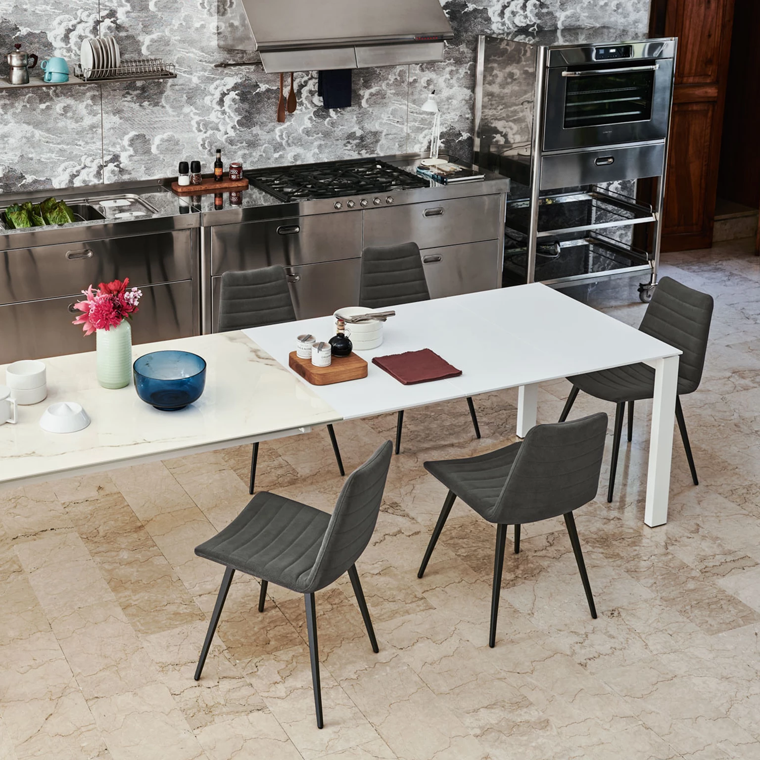 Clean using a microfibre cloth and neutral detergent. Always rinse with water and dry after cleaning. Avoid using bleaches, detergents, solvents and abrasive products. Immediately remove any liquids or other residues to avoid absorption and permanent stains. Note that these suggestions are only recommendations and do not guarantee complete removal of stains. Please always refer to the technical and maintenance specifications mentioned on each specific sheet and the indications on any labels.