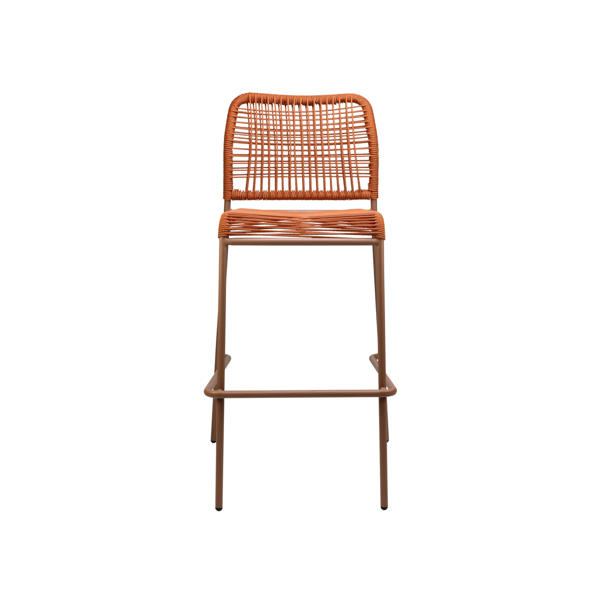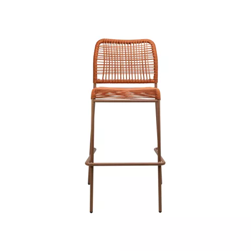 Dieser Barhocker für die Terrasse verbindet modernes Design mit praktischem Komfort für gastronomische Außenbereiche. Der leichte Rahmen wird durch eine Sitzfläche aus wetterbeständigem Seilgeflecht ergänzt, das für Struktur und angenehmen Sitzkomfort sorgt. Dank seiner klaren Linien passt der Barhocker sowohl in ruhige Lounge-Bereiche als auch in lebendige Terrassen von Cafés und Restaurants. Für den täglichen Einsatz in der Gastronomie ist er stapelbar und somit leicht zu lagern. Erhältlich in den Farben Weiß/Natur, Grün und Orange. Die Kollektion umfasst außerdem einen passenden Sessel und eine Bank, sodass sich Außenbereiche einheitlich gestalten lassen. Für ein stimmiges Gesamtbild kann er mit dem Beistelltisch Lino kombiniert werden, der in denselben Farben wie das Gestell erhältlich ist.