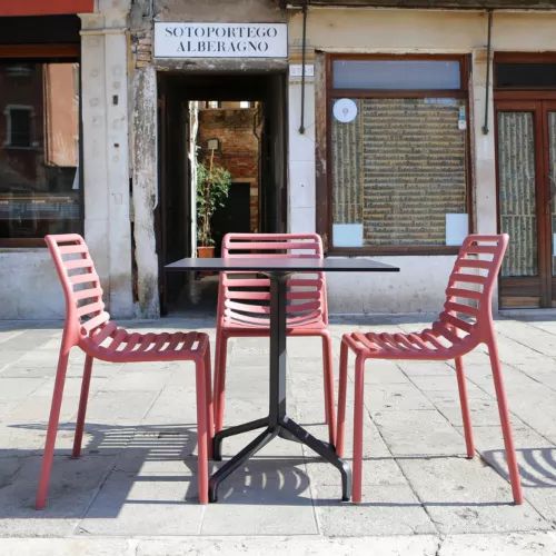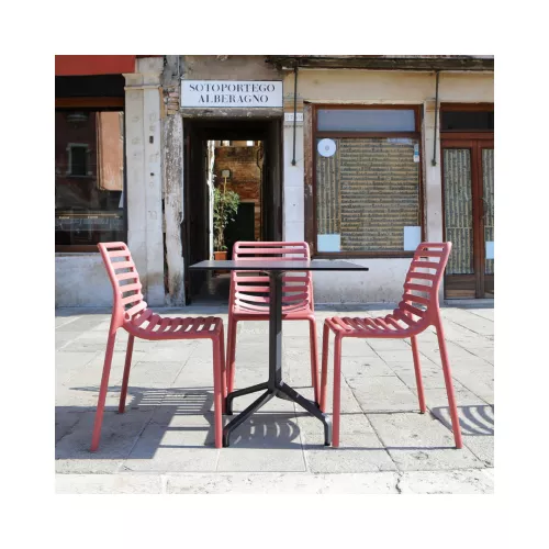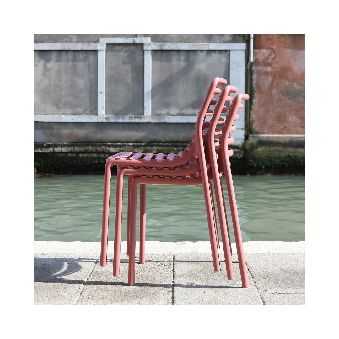 Doga S ist ein Monoblock-Stuhl ohne Armlehnen, aus durchgefärbtem Polypropylen mit Glasfaser und UV-Zusätzen. Recycelbar, stapelbar, mit matter Oberfläche und rutschfesten Füßen. Erhältlich in 8 Farben. Sitzkissen auf Anfrage erhältlich.