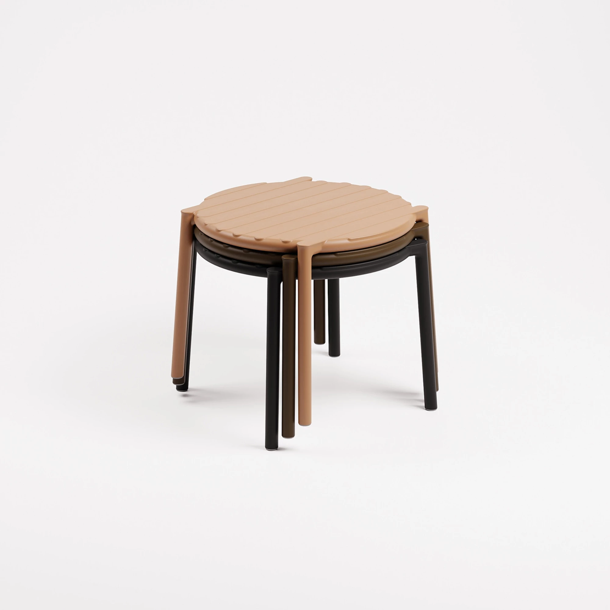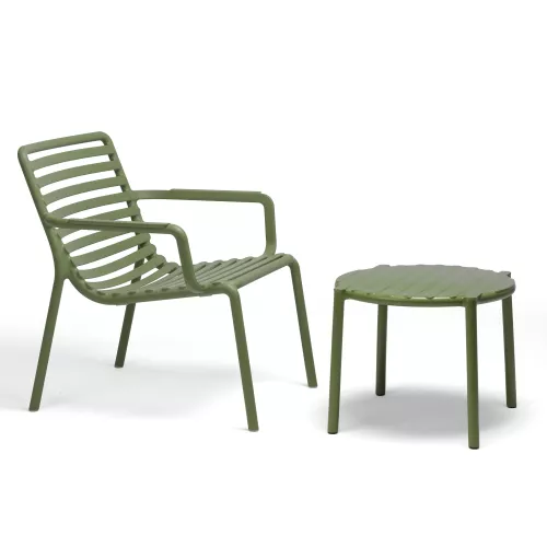 Der Doga Beistelltisch ist ein leichter, monoblockiger Beistelltisch aus glasfaserverstärktem Kunststoff mit runder Tischplatte und modernem, praktischem Design. Dank seiner stapelbaren Struktur lässt er sich leicht transportieren und verstauen. Er ist für den Außenbereich konzipiert und besteht aus einheitlich durchgefärbtem glasfaserverstärktem Polypropylen mit UV-Zusätzen und einer matten Oberfläche, die Langlebigkeit und einfache Reinigung gewährleistet.