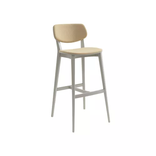 Doll 556 ist ein robuster und eleganter Barhocker, der speziell für den Gastronomiebereich entwickelt wurde. Der Rahmen aus massivem Buchenholz ist mit verschiedenen Holzbeizen oder RAL-Farben individuell anpassbar. Sitzfläche und Rückenlehne sind mit strapazierfähigen, hochwertigen Stoffen oder Kunstleder bezogen und bieten Komfort und Eleganz. Sein vielseitiges Design passt sich problemlos an unterschiedliche gewerbliche Innenräume an.