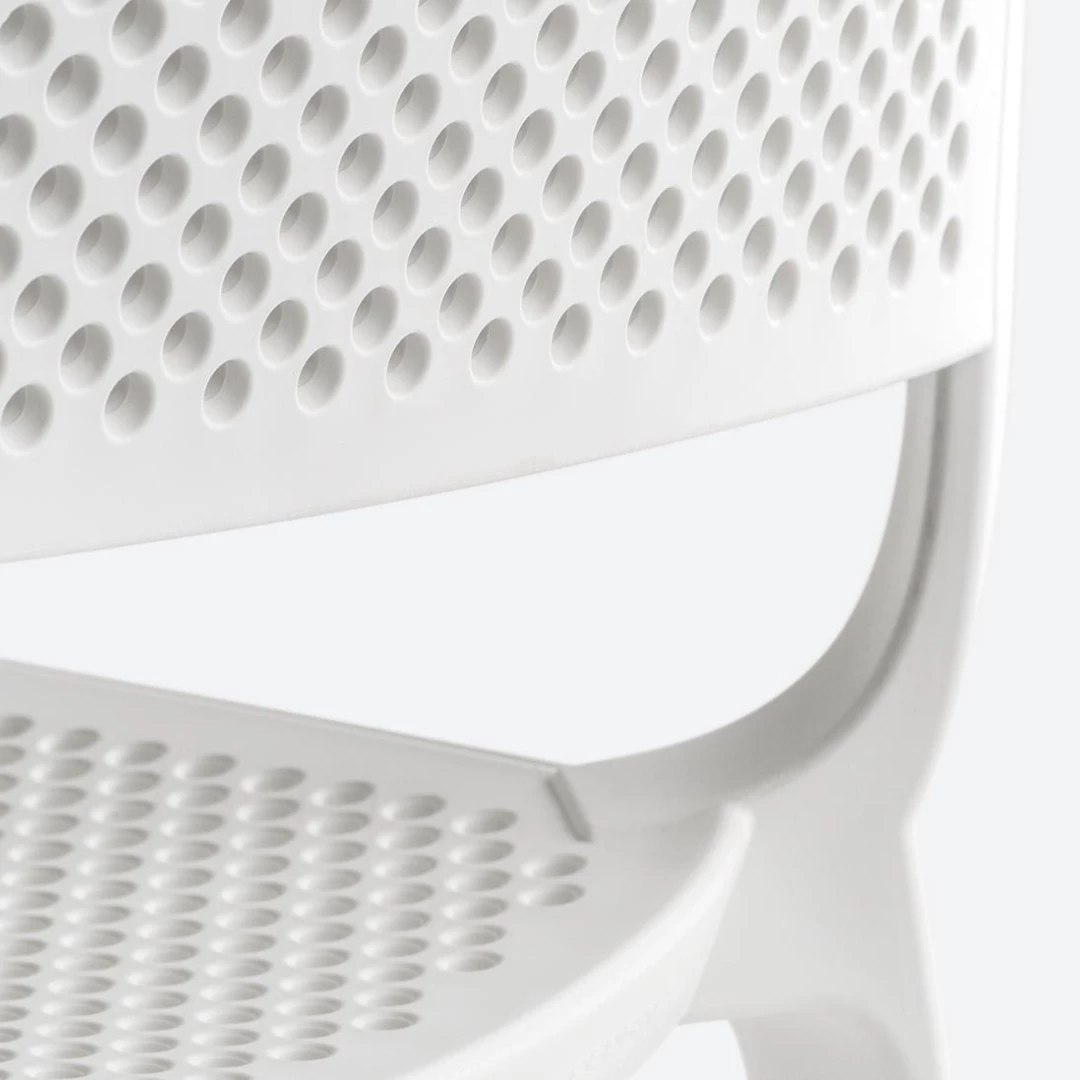 Dome 261 ist ein Outdoor-Stuhl aus Polypropylen mit perforierter Sitzfläche und Rückenlehne für besseren Komfort und Belüftung. UV-beständig, antistatisch und stapelbar – ideal für Gastronomieterrassen. Erhältlich in verschiedenen Farben.