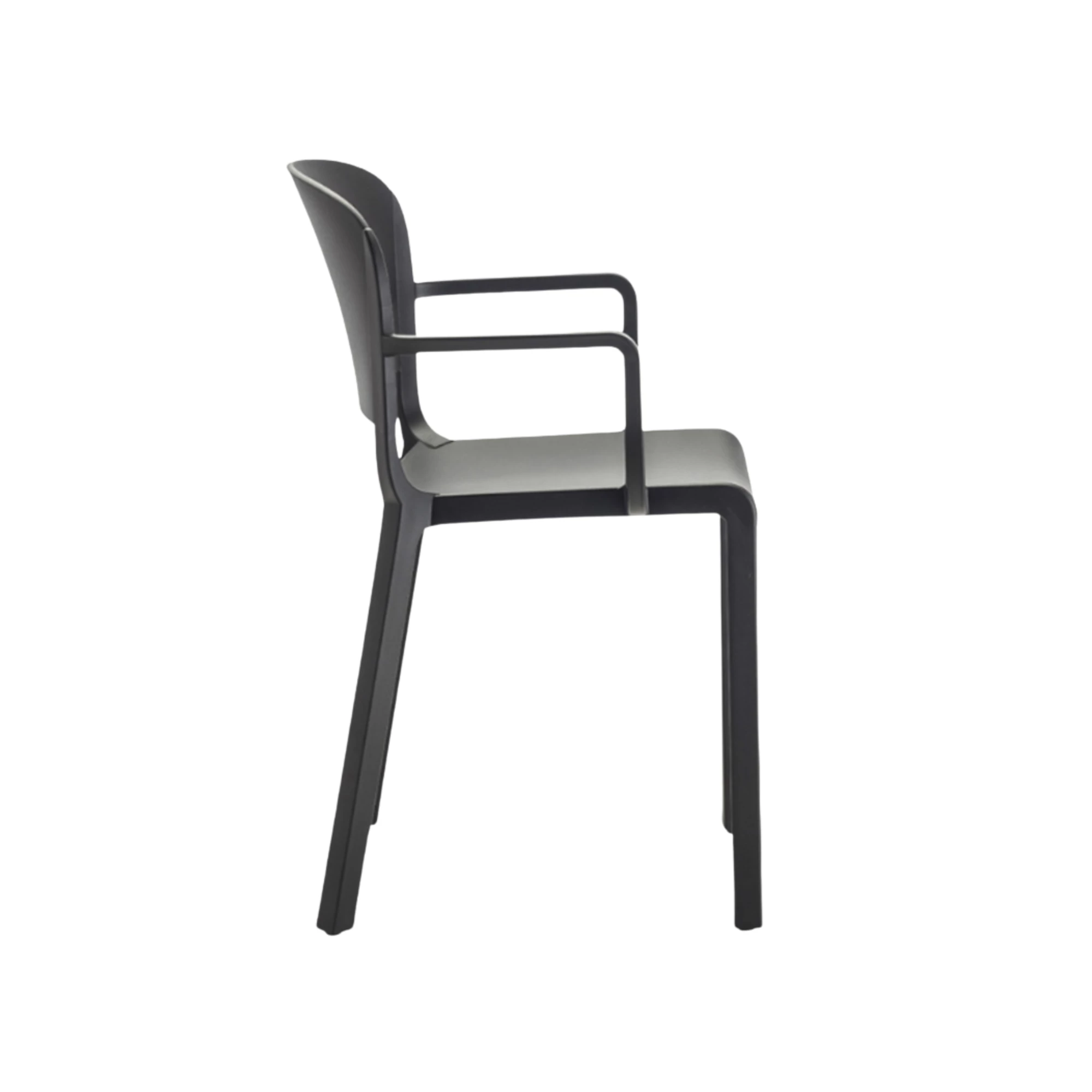 Dome 265 ist ein Outdoor-Stuhl mit Armlehnen aus widerstandsfähigem Polypropylen. Perfekt für Gastronomieterrassen. UV-beständig, antistatisch und stapelbar, erhältlich in vielen modernen Farben.