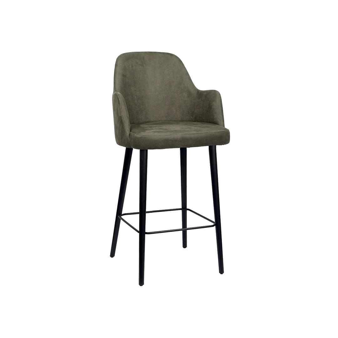 Barhocker mit Massivholzrahmen und widerstandsfähigem Polyurethanlack, ideal für den intensiven gewerblichen Einsatz. Sitz und Rückenlehne sind gepolstert mit hochwertigem Schaumstoff – für Komfort und Stil in eleganten Gastronomiebereichen. Erhältlich mit Stoffbezug in verschiedenen Farben.