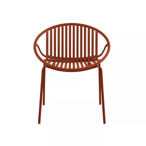 Stuhl aus Metall und Polypropylen, entwickelt für den Einsatz in Outdoor-Gastronomiebereichen. Die stabile Metallstruktur in Kombination mit der langlebigen Polypropylen-Sitzfläche sorgt für Widerstandsfähigkeit bei täglicher Nutzung auf Terrassen, Patios sowie in Café- und Restaurant-Außenbereichen. Dank seiner kompakten Maße lässt sich der Stuhl leicht in verschiedene Terrassenkonzepte integrieren. Er ist in zwei Farbvarianten erhältlich.
