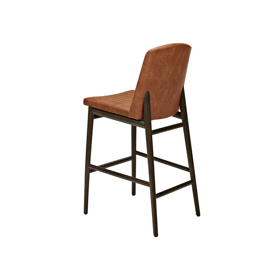 Der Barhocker aus massivem Holz aus der Fenton Kollektion verfügt über eine Fußstütze sowie einen gepolsterten Leder-Sitz und Rückenlehne, die Komfort und Halt für längeres Sitzen bieten. Ideal für moderne und traditionelle Interieurs.
