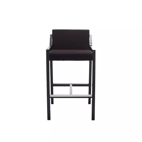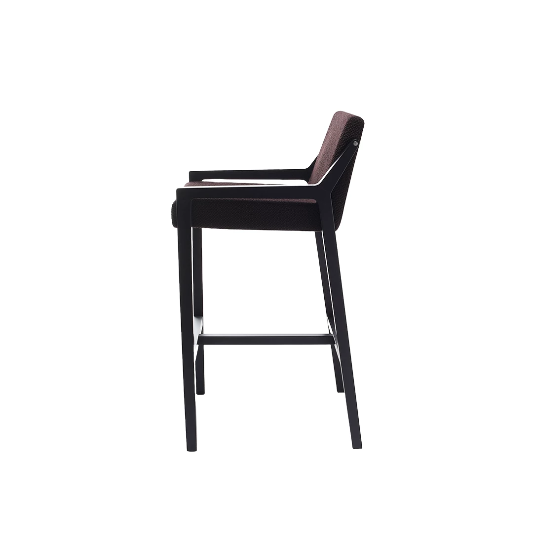 Der Barhocker Fred BK aus Holz verkörpert Gastfreundschaft und vereint Komfort mit raffiniertem Design. Sitz und Rückenlehne sind weich gepolstert und in verschiedenen Stoffen oder Kunstleder erhältlich. Sie ruhen auf einem stabilen Buchenholzgestell mit Aluminium-Fußstütze. Die sanften Linien der Schale bilden einen schönen Kontrast zur robusten Konstruktion und schaffen eine einladende, zeitlose Ästhetik.