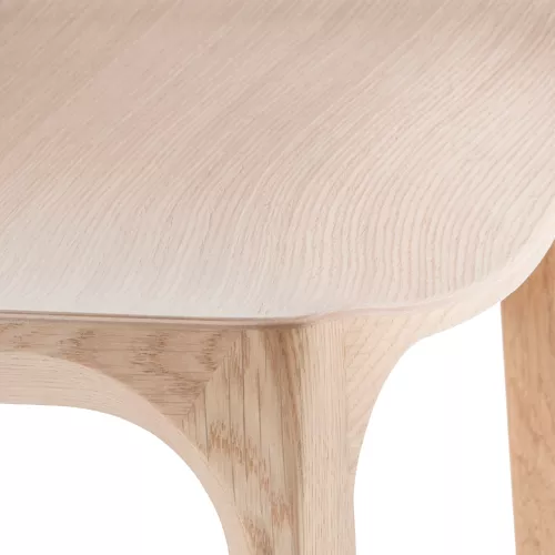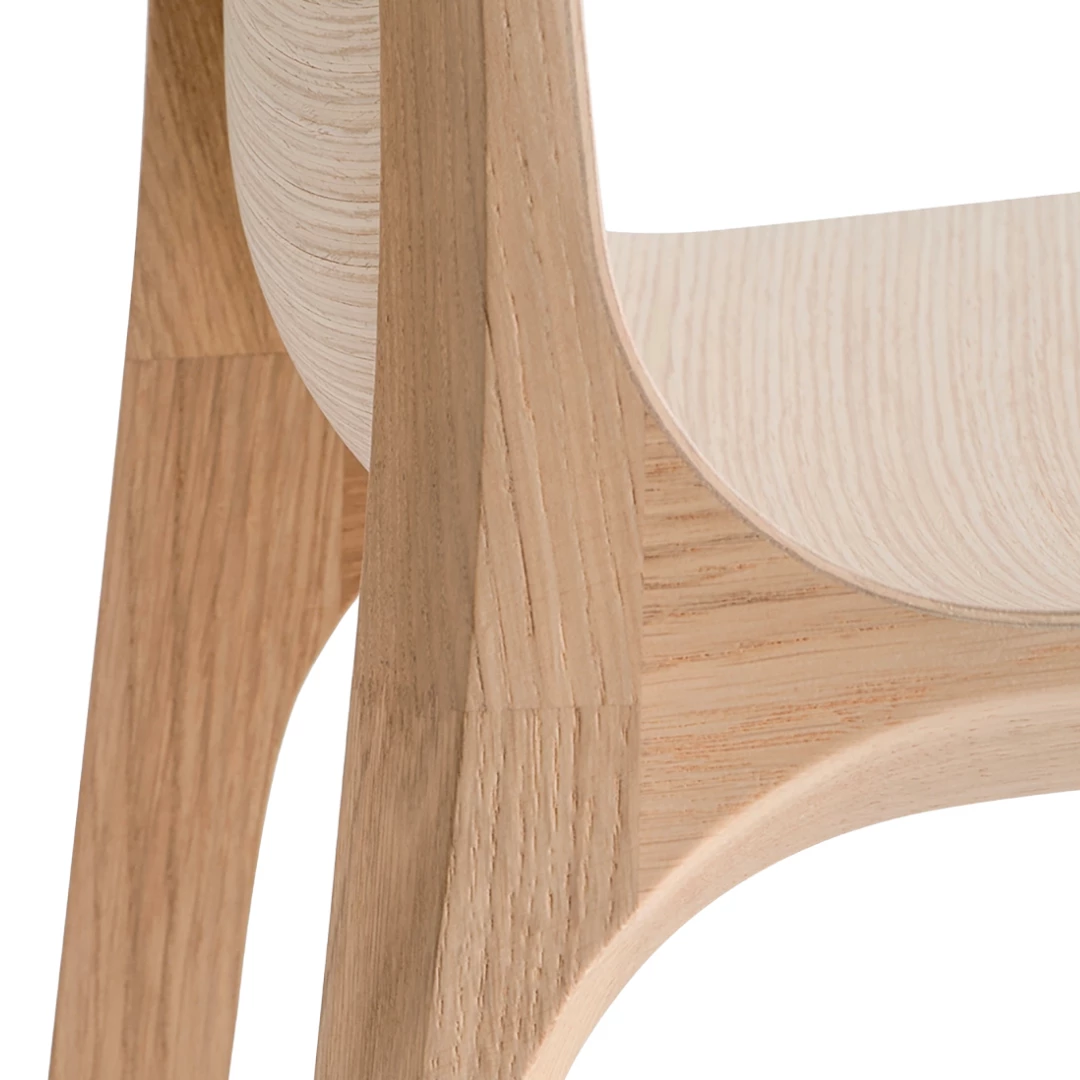 Der Frida 752 ist ein eleganter Stuhl, der eine massive Eichenholzstruktur mit einer dreidimensional geformten Schichtholzschale vereint – ein gelungenes Zusammenspiel aus Handwerkskunst und Innovation. Die Holzkomponenten sind präzise verbunden und mit einem matten, wasserbasierten Lack (Glanzgrad 5) behandelt, der die natürliche Maserung sichtbar lässt und kratzfest ist. Filzgleiter mit Klebefläche sorgen für schonenden Kontakt mit empfindlichen Böden wie Holz, Keramik oder Marmor.