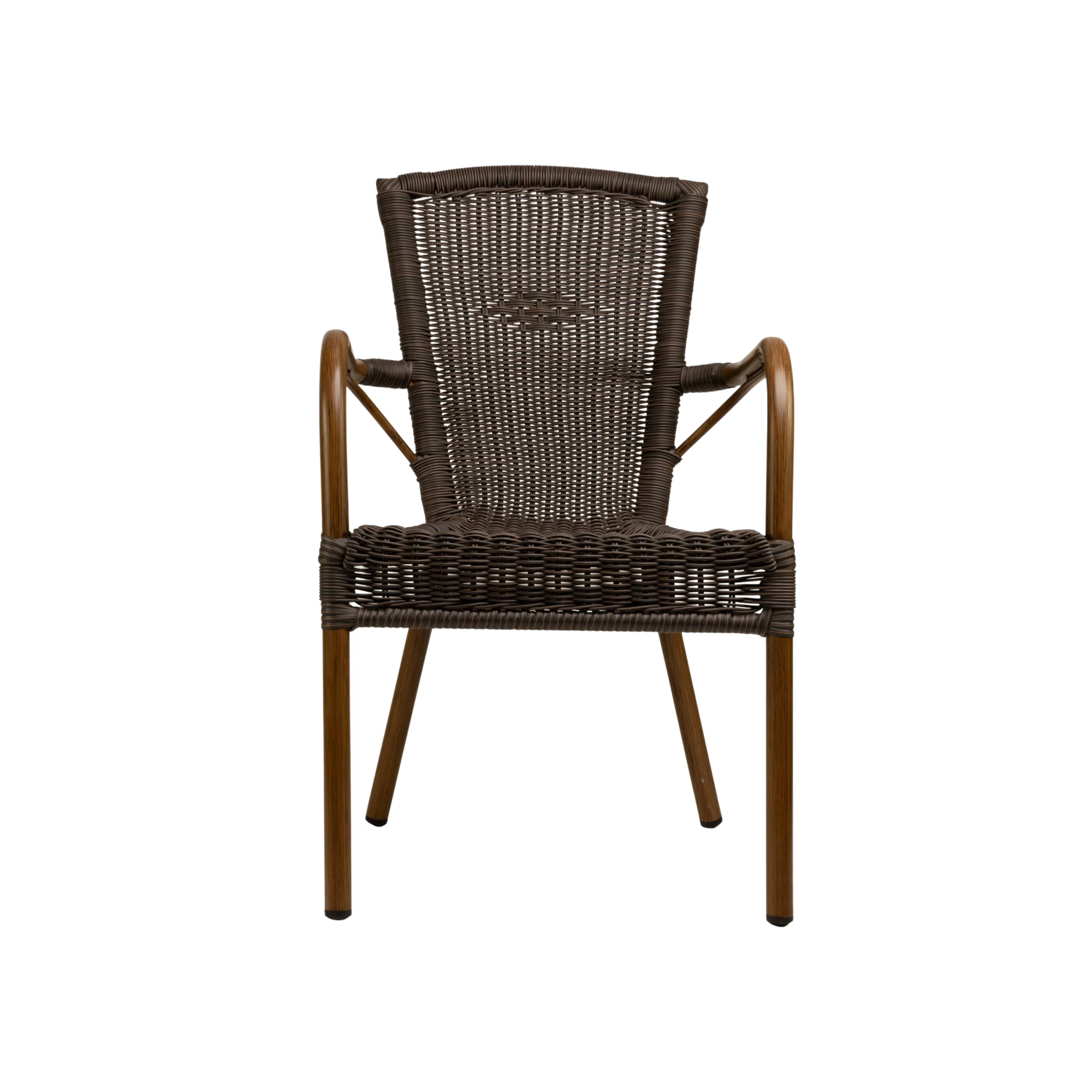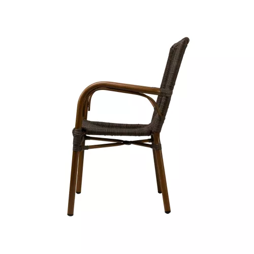 Der Heerlen Stuhl kombiniert Haltbarkeit mit modernem Design und ist ideal für Terrassenrestaurants, Cafés und Bistros. Mit einem robusten Aluminiumrahmen von Ø32*1,5mm bietet er sowohl Stärke als auch Stabilität. Das Bambus-Look Finish verleiht ihm eine natürliche Eleganz, die perfekt zu Außenbereichen passt. Die UV-beständige PE-Rundgeflecht sorgt für langanhaltende Qualität, die gegen Ausbleichen, Risse oder Abblättern unter intensiver Sonneneinstrahlung resistent ist. Der stapelbare Design macht den Heerlen Stuhl zu einer großartigen platzsparenden Lösung für stark frequentierte Lokalitäten. Ob Sie Ihre Außenbestuhlung aufwerten oder eine neue gestalten, der Heerlen Stuhl ist die stilvolle, funktionale und nachhaltige Wahl für jede moderne Terrasse.