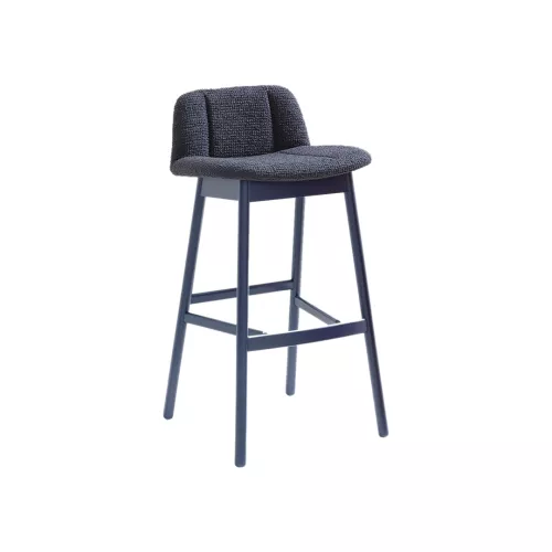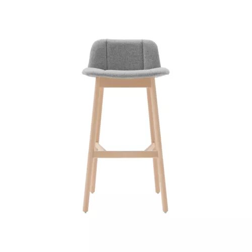 Hippy 639 ist ein stilvoller Barhocker mit stabilem Buchenholzrahmen sowie gepolsterter Sitzfläche und Rückenlehne für maximalen Komfort. Das Gestell ist in verschiedenen Holzbeiztönen erhältlich, während der Bezug mit einer Vielzahl professioneller Stoffe individuell gestaltet werden kann – ideal für moderne Gastronomiebereiche.