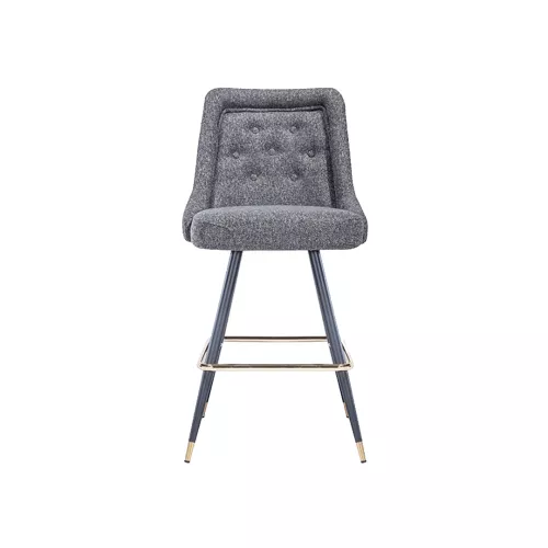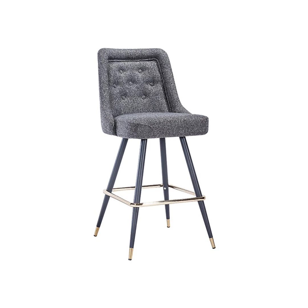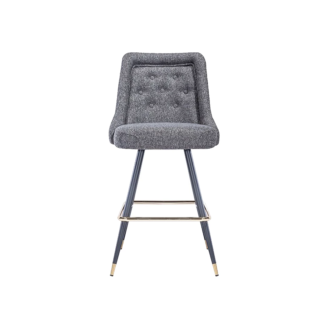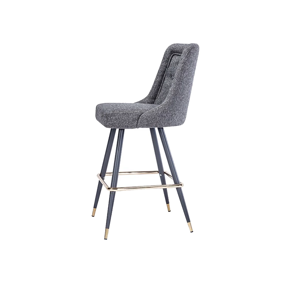 Der Barhocker Jim BK 001 B vereint Eleganz mit robuster Funktionalität. Sein stabiles Metallgestell und die Fußstütze garantieren Langlebigkeit, während der gepolsterte Sitz, erhältlich in hochwertigen Stoffen oder Kunstleder, für hohen Komfort sorgt. Dekorative Knöpfe an der Rückenlehne verleihen ihm eine edle Note und machen ihn ideal für Bars, Hotels und andere Gastronomiebetriebe.