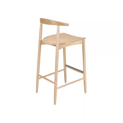 Dieser elegante Barhocker aus massivem Buchenholz besticht durch seine formschönen, sich verjüngenden Beine und die geschwungene Rückenlehne, die die natürliche Maserung des Holzes wunderschön zur Geltung bringt. Die Fußstütze aus gebürstetem Edelstahl verleiht ihm eine moderne Note und garantiert gleichzeitig Langlebigkeit und Komfort. Abgerundet wird das Design durch einen passenden Holzsitz. Dieses Möbelstück verkörpert zeitloses Design und solide Handwerkskunst – ideal für stilvolle Gastronomiebetriebe.