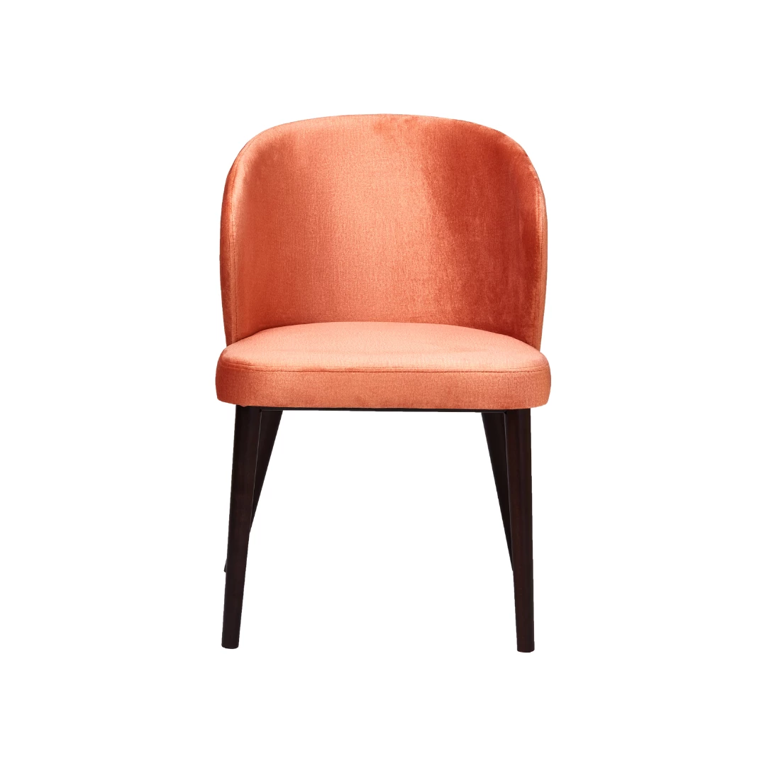 Dieser Stuhl besteht aus einem robusten Buchenholzrahmen, der mit einem schützenden Polyurethanlack beschichtet ist – perfekt geeignet für die intensive Nutzung im Gastronomiebereich. Die Sitzfläche ist mit hochdichtem Schaumstoff gepolstert, der langanhaltenden Komfort und Strapazierfähigkeit gewährleistet. Der Stuhl ist vollständig anpassbar und kann mit einer großen Auswahl an professionellen Stoffen individuell gestaltet werden.