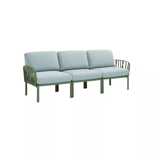 Der Komodo 3-Sitzer kombiniert Komfort und Stil mit einem Rahmen aus UV-beständigem Polypropylenharz mit Glasfaser. Ein Kissen-Set ist im Lieferumfang enthalten. Erhältlich in verschiedenen Farben: Der Rahmen ist in Weiß, Anthrazit, Tortora und Agave erhältlich, während die Kissen in Rosa Quarzo und Grau verfügbar sind. Ideal für Innen- und Außenbereiche.