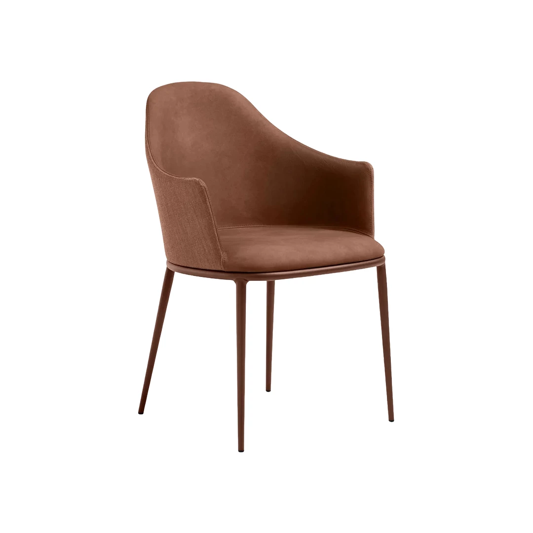 Der Stuhl Lea A mit Armlehnen vereint Eleganz und Komfort mit einem robusten, vierbeinigen Metallgestell. Sitzfläche und Rückenlehne sind mit Stoff, Leder oder Kunstleder bezogen, wobei Vorder- und Rückseite optional mit unterschiedlichen Materialien erhältlich sind. Dank individuell anpassbarer Gestell- und Bezugsausführungen ist er eine vielseitige Wahl für moderne Interieurs und professionelle Räumlichkeiten.