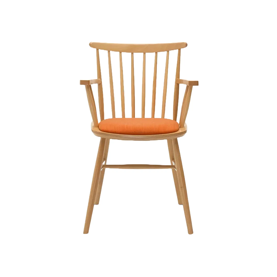 Der Stuhl Louisiana A UPH mit Armlehnen vereint traditionelles Design mit trendigem Vintage-Stil. Sein profiliertes Gestell, die schlanken, handgeschliffenen Rückenlehnenstreben und die geschwungene Querverstrebung ergänzen die einzigartige, hufeisenförmige Sitzfläche. Gefertigt aus Buchenholz, verfügt er über eine gepolsterte Sitzfläche und eine hölzerne Rückenlehne. Erhältlich in verschiedenen Holzfarben und Stoffen oder Kunstleder – perfekt für die Gastronomie.