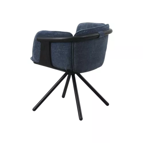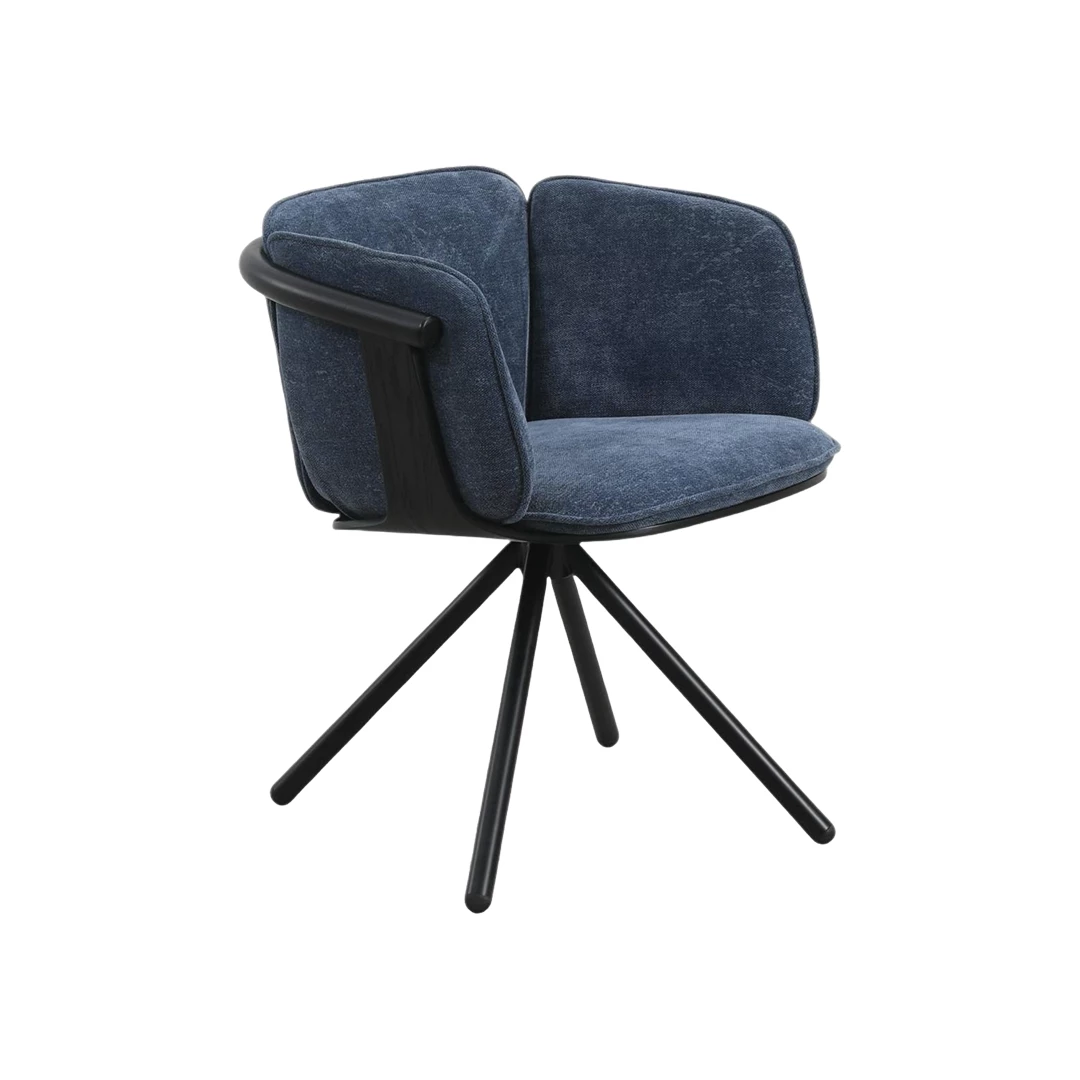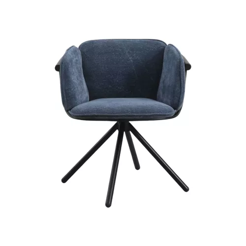 Modern gepolsterter Stuhl mit pulverbeschichtetem Metallgestell und markantem Spider-Fußkreuz mit vier Beinen. Die umlaufende Rückenlehne mit Armstützen sorgt für Komfort, während das kompakte Design perfekt für HoReCa-Lounges oder Essbereiche geeignet ist. In verschiedenen Stoffen oder Leder erhältlich.