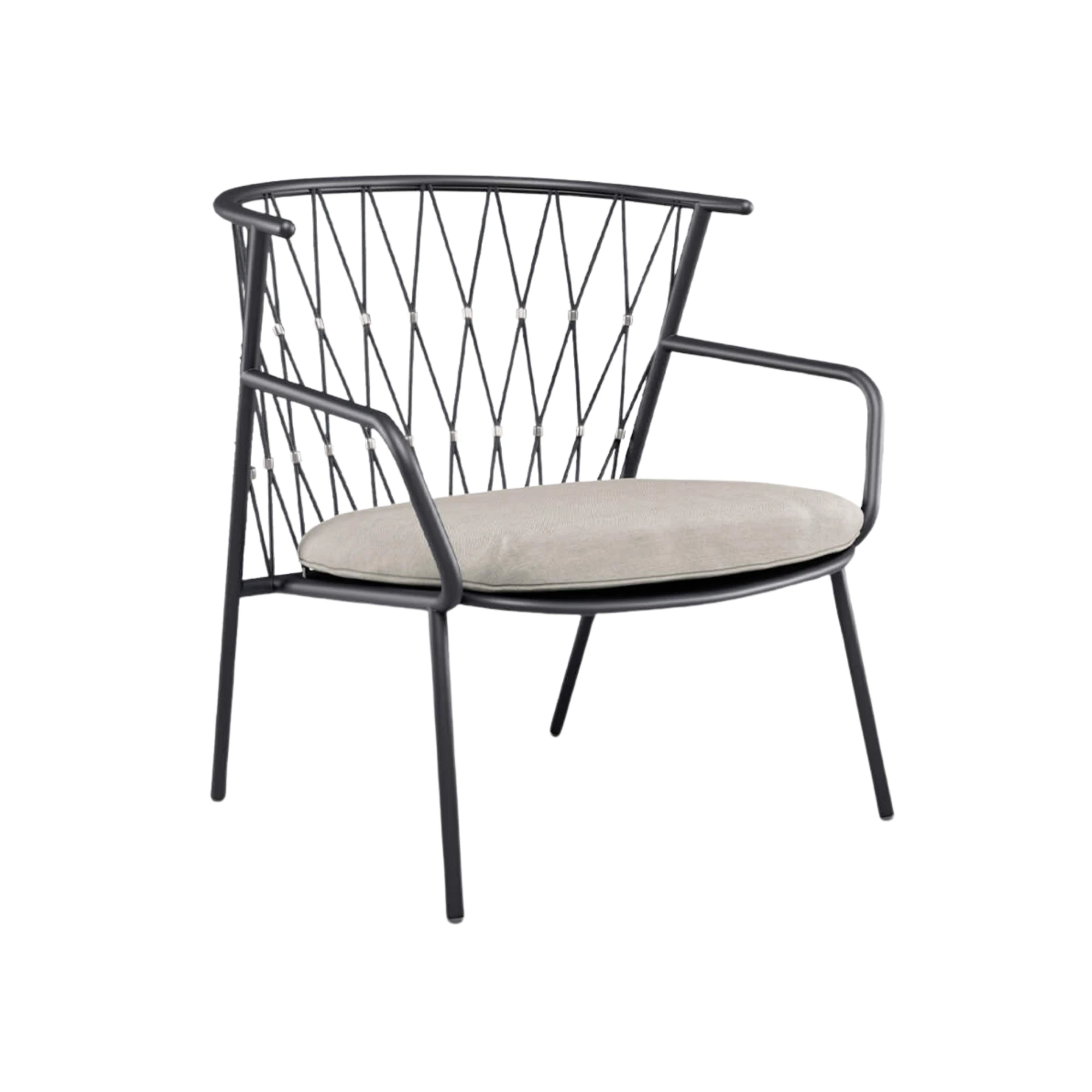 Der Nef Lounge verbindet modernes Design mit hochwertigen Materialien und ist ideal für den Einsatz in stilvollen Innenräumen von Restaurants. Aus Aluminium, Edelstahl und synthetischem Seil gefertigt, bietet der Sessel Stabilität und zeitgemäße Optik. Sitz- und Rückenkissen sorgen für hervorragenden Komfort, während Details aus Buchenholz dem Ambiente eine warme Note verleihen. Nef Lounge steht für Langlebigkeit, Stil und Komfort im Gastronomiebereich.