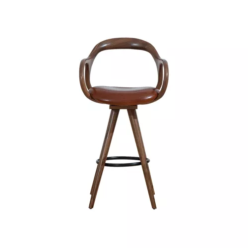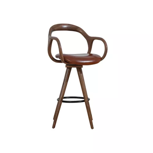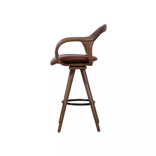 Der Barhocker Nelas BK vereint minimalistisches, natürliches Design mit Komfort und Langlebigkeit. Sein Gestell aus Buchenholz, erhältlich in verschiedenen Farben, verfügt über eine abgerundete Rückenlehne und Armlehnen aus Holz, eine Fußstütze aus Metall und einen gepolsterten Sitz. Ideal für Bars, Hotels und diverse Gastronomiebetriebe, wahlweise mit Bezug aus hochwertigen Stoffen oder Kunstleder.