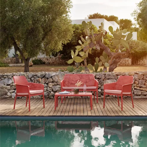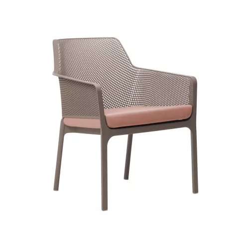 Der Net Relax Loungesessel vereint Komfort, Stil und Langlebigkeit für den professionellen Gastronomiebereich. Aus glasfaserverstärktem Polypropylen mit matter Oberfläche gefertigt, verfügt er über rutschfeste Füße und ein stapelbares Design für einfache Lagerung. Wetter- und UV-beständig, ideal für den intensiven Außeneinsatz. Erhältlich in Rahmenfarben Weiß, Anthrazit, Salice, Tortora, Senape, Coral sowie mit Sitzkissen aus Polyurethanschaum (Dichte 28 kg/m³) in Grey Stone, Rosa Quarzo, Senape, Denim, The Verde, Sardinia, Weiß oder Grau. Perfekt für Terrassenrestaurants, Cafés und Bistros mit hohen Ansprüchen an Design und Beständigkeit.
