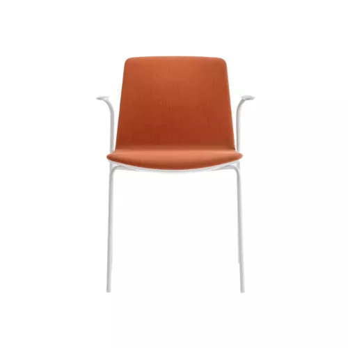 Die Noa-Kollektion verbindet dank innovativer Konstruktionstechniken elegante Proportionen mit hohem Sitzkomfort. Der Sessel verfügt über eine Rückenlehne aus Polycarbonat und eine gepolsterte Sitzfläche. Das Gestell besteht aus 16 mm starkem Stahlrohr und ist in den Ausführungen weiß, schwarz pulverbeschichtet oder verchromt erhältlich. Die Außenschale besteht aus strapazierfähigem Polycarbonat, während die Innenschale mit flammhemmendem Stoff bezogen ist. Polycarbonat-Ausführungen: weiß und schwarz.