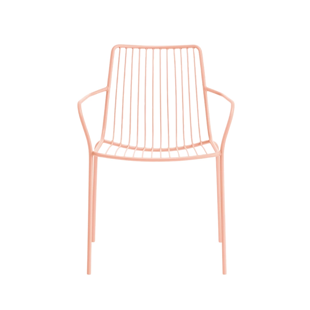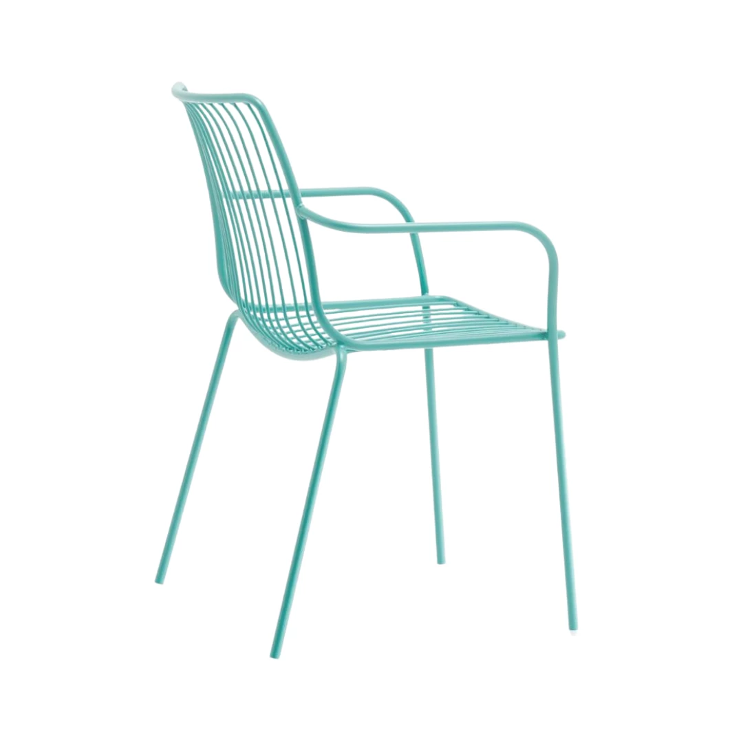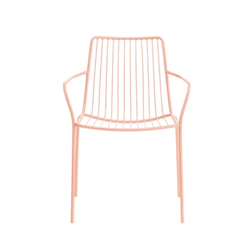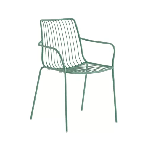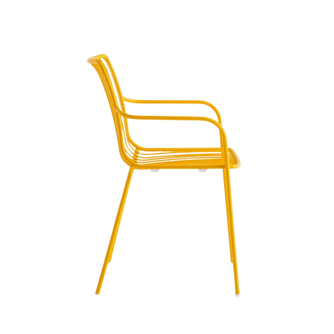 Dieses Modell mit hoher Rückenlehne ist vollständig aus Stahl gefertigt und speziell für den Außenbereich konzipiert. Der stapelbare Aufbau erleichtert die Lagerung, und ein optionales Sitzkissen sorgt für zusätzlichen Komfort.