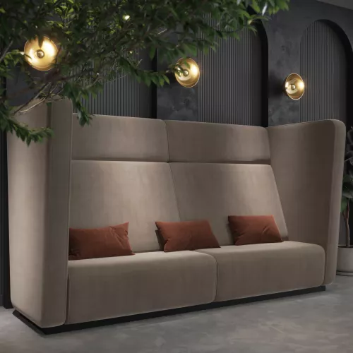 Die Parleur Bank ist eine modulare Sitzbank mit hoher Rückenlehne und Armlehnen, ideal für den Einsatz in der Gastronomie. Gepolstert mit hochdichtem Schaumstoff, erhältlich in professionellen Stoffen oder Kunstleder. Maße individuell anpassbar.