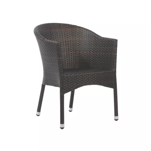 Romance ist ein stilvoller Outdoor-Stuhl für den HORECA-Bereich. Mit pulverbeschichtetem Aluminiumrahmen und Sitzfläche aus flachem P.E.-Wicker in Burned-Farbe bietet er Langlebigkeit und Komfort. Wetter- und UV-beständig, stapelbar und ideal für Terrassen und Außenbereiche der Gastronomie.