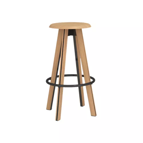 Jean ist ein stilvoller und robuster Hocker mit vier Eisenbeinen, die mit Holzleisten verkleidet sind – eine harmonische Verbindung aus Industrie-Design und natürlichem Charme. Die quadratische Basis (40x40 cm) sorgt für Stabilität, während die Fußstütze zusätzlichen Komfort bietet. Ideal für Cafés, Bars oder Restaurants mit hoher Frequentierung.