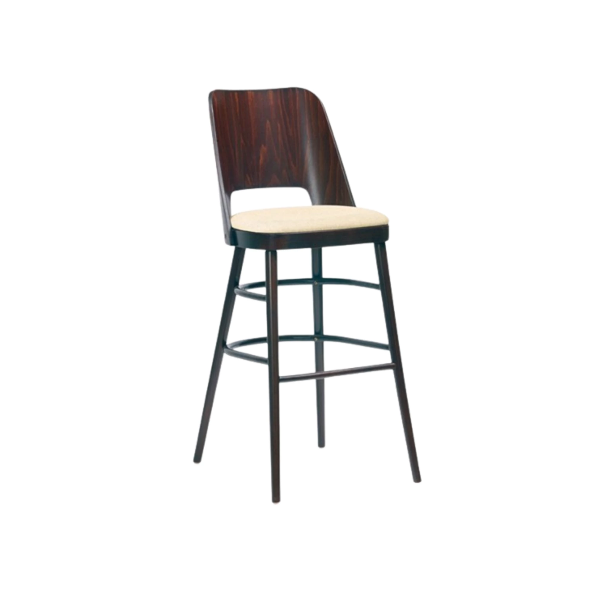 Dieser Barhocker im Retro-Stil ist aus robustem Buchenholz gefertigt und verfügt über eine gepolsterte Sitzfläche für mehr Komfort. Mit schützendem Polyurethan-Lack versehen, ist er für stark frequentierte Gastronomieumgebungen geeignet. Die Sitzfläche ist mit hochdichtem Schaumstoff gepolstert und bietet so dauerhaften Halt. Erhältlich in einer großen Auswahl an Holzbeizen und Stoffen, passend zu Ihren Einrichtungswünschen.