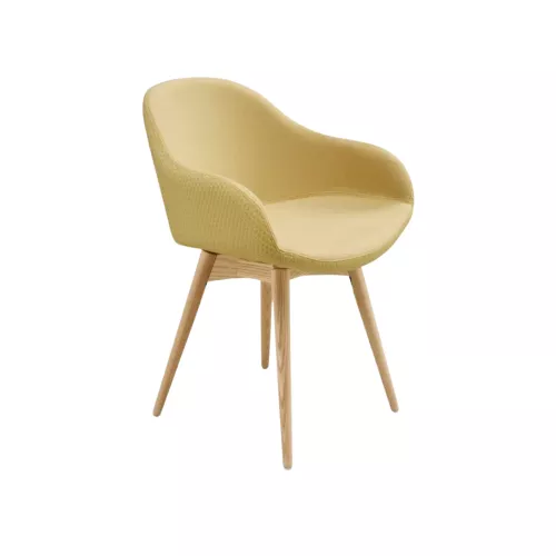 Die Sonny-Kollektion vereint weiche, einladende Formen mit robusten, zeitlosen Materialien. Dieser Stuhl mit niedrigen Armlehnen ruht auf einem Gestell aus massivem, lackiertem Eschenholz und verbindet so Wärme und Eleganz in einem modernen Design. Die gepolsterte Sitzschale bietet außergewöhnlichen Komfort und ist in einer großen Auswahl an Stoffen erhältlich, sodass sie sich perfekt in jedes Gastronomie-Interieur einfügt.