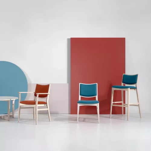 Soul   Lounge ist ein Loungesessel mit Armlehnen, der Komfort und zeitlose Ästhetik für den HORECA-Bereich vereint. Der Rahmen aus Buchenholz ist in mehreren Beiztönen erhältlich. Die Sitz- und Rückenfläche sind mit professionellen Stoffen bezogen. Dank klarer Linien und solider Verarbeitung passt er perfekt in stilvolle Lobbys und Lounges.